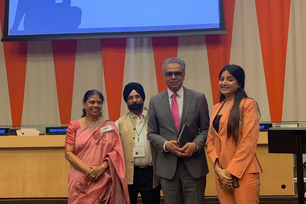 Mr. H.S. Panaser with Ambassador Syed Akbaruddin and actress Poonam Kaur at UN