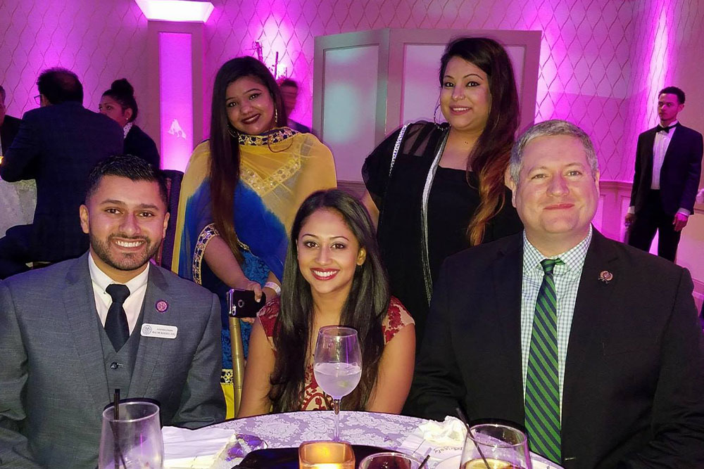 Ms, Ajooni and Alicia Kaur with Assenblyman R Mukerjee, Mrs Mukerjee and Aseemblyman Dan Benson