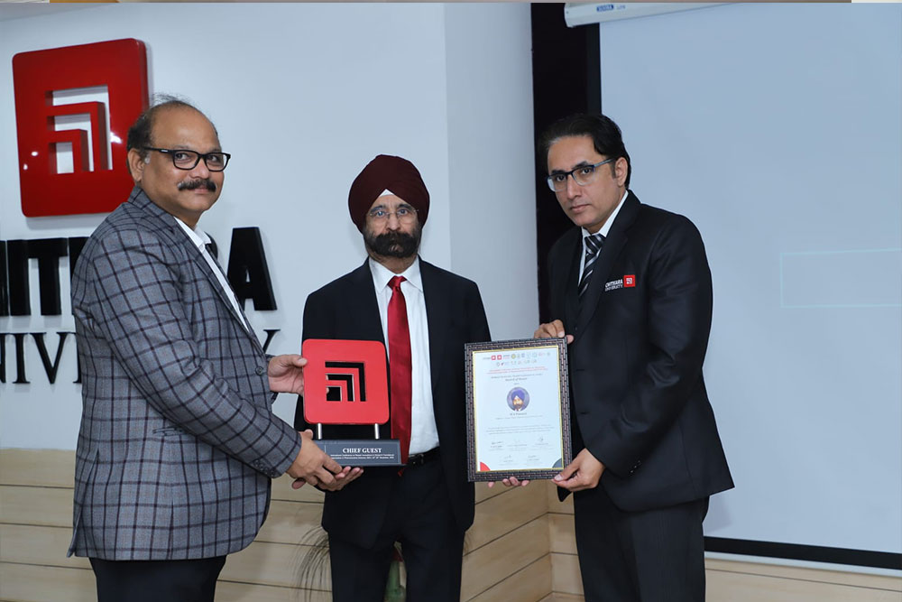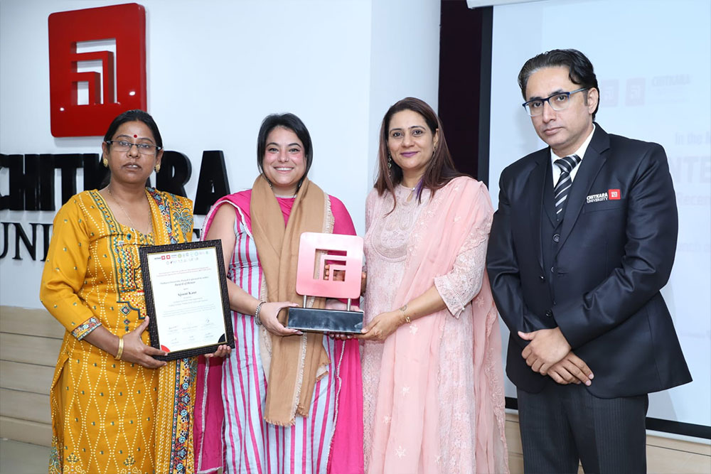 Ms. Ajooni Kaur being honored by Chitkara University, India
