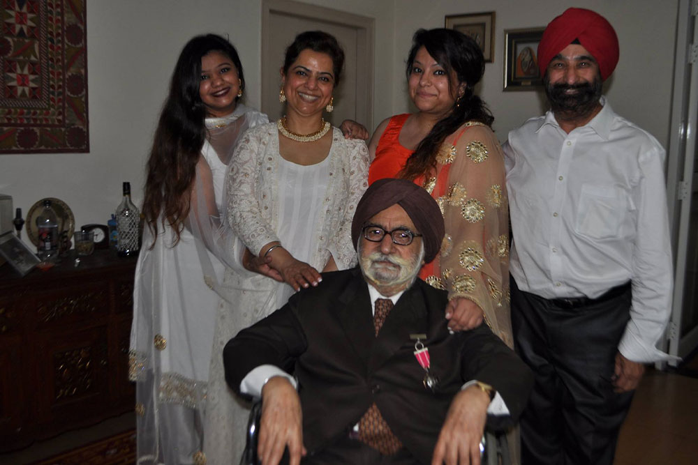 Professor Harkishan Singh with his daughter Dr. Manjeet , son in law Mr. Panaser and grad daughters Ajooni and Alicia.