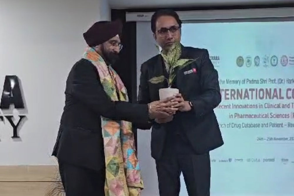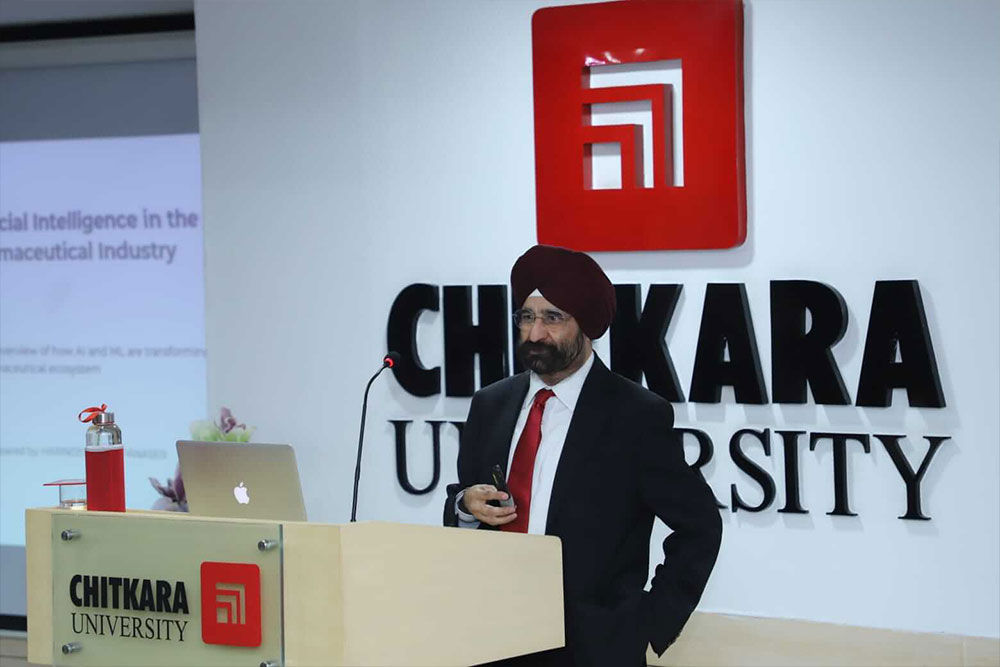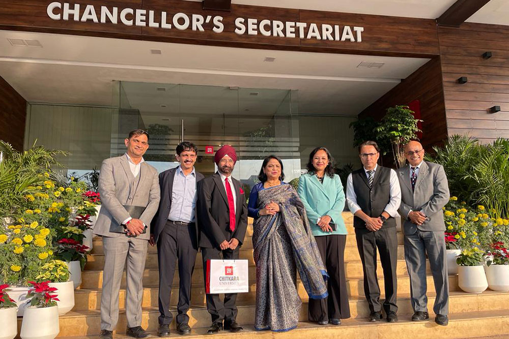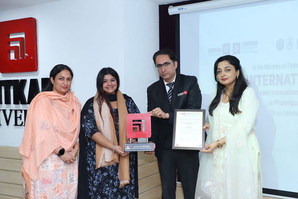 Mr. H.S. Panaser with Vice Dr. Madhu Chitkara, Pro Chancellor,Dr. Archana Mantri, Vice Chancellor & Dr. Thakur G Singh HOD, Pharmaceuticals, Chitkara University, Chandigarh.