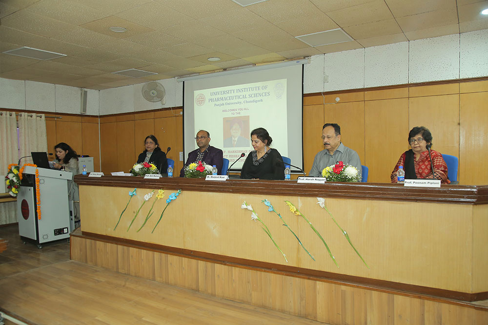 At Punjab University , Chandigarh, India. Dr. Manjeet Kaur, speaking on initiation Scholarship for B Pharma and M Pharma in memory of Professor Emeritus Harkishan Singh on his 95th Birthday