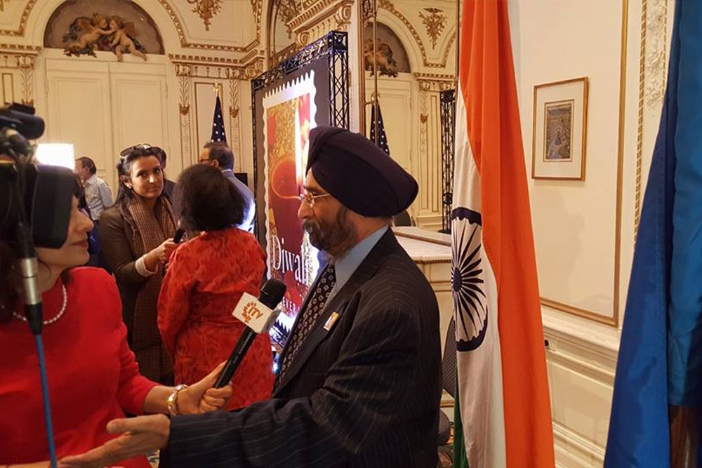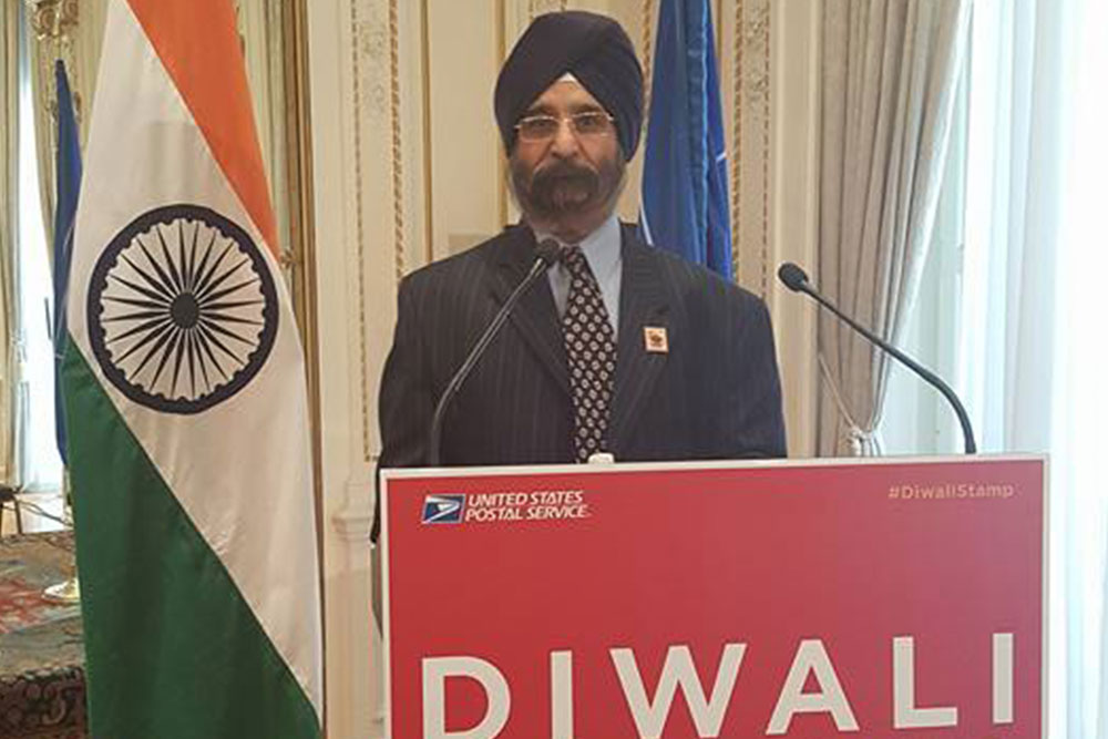Mr. H.S. Panaser spaking at the evnt of launching of Diwali postal stamp at CGI, NY